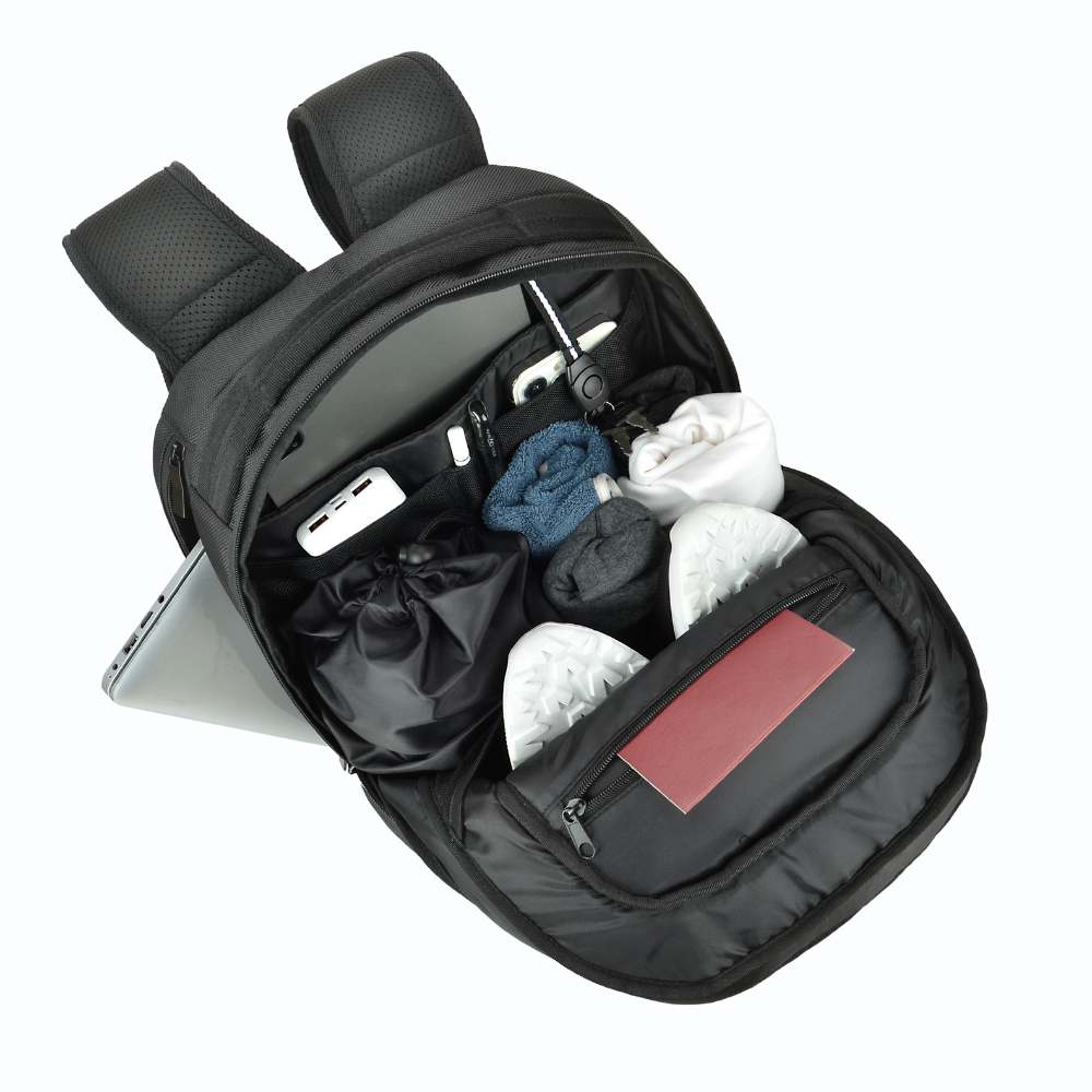 So happy with this backpack. It's super spacious and fits a ton of stuff including my laptop, work documents, lunch and even my running gear – and it's not even full yet. The multiple compartments inside the bag allow me to quickly grab what I need without having to pull everything out.